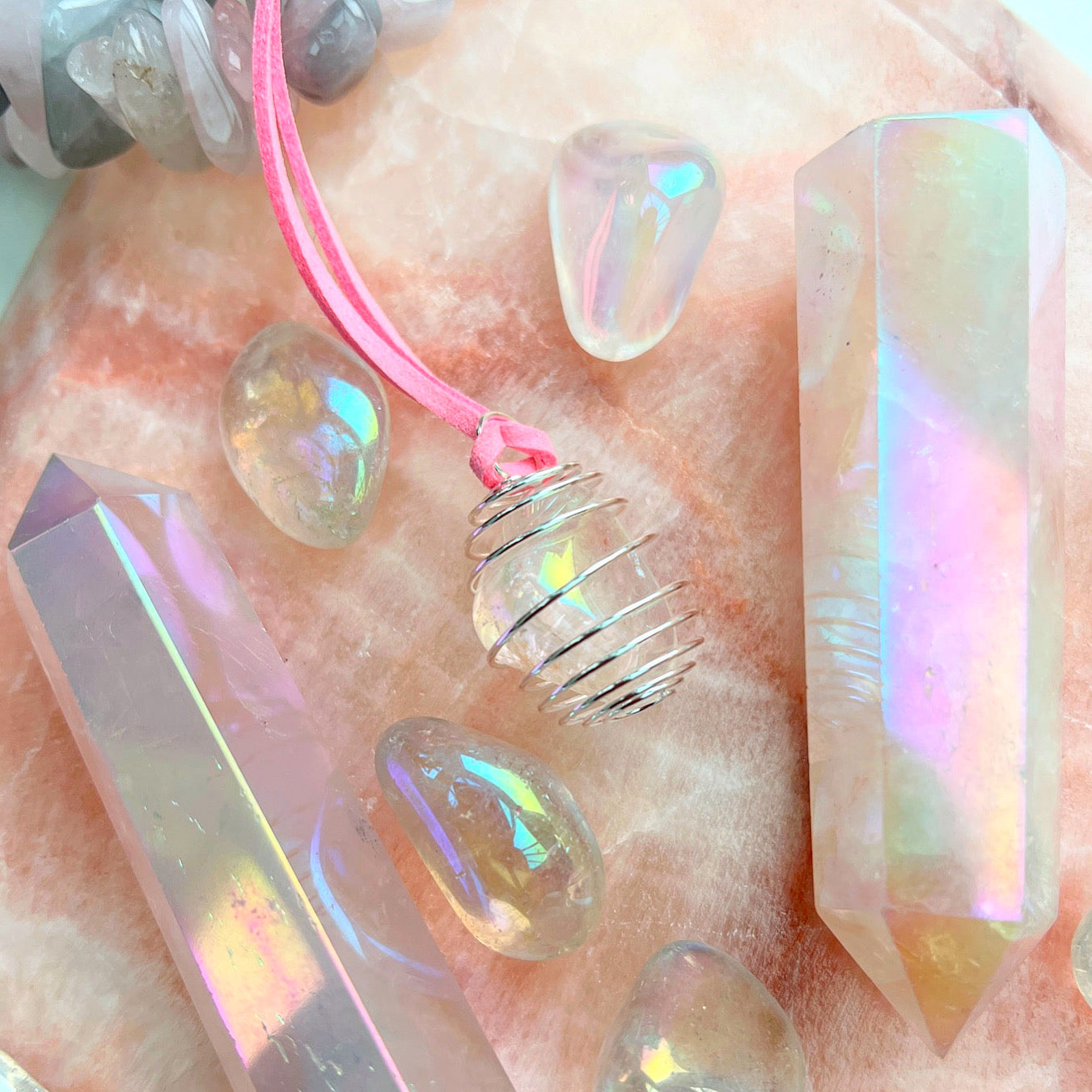 Angel Aura pendant boho necklace ðžðž Angel Aura has a sweet energy & surrounds you and your aura with a happy uplifting angelic light energy making you feel lighter & brighter ðžðžððĪĐ ðžðžððžðž Cleanses the aura and facilitates deeper and higher levels of meditation. It is a peaceful and tranquil Crystal, useful for communication with Angels, spirit guides, and other spiritual teachers. Bringing access to angelic realms and the Akashic records. It is good for empathy, karma, and protection. ðžðž Angel Aura help to release negative emotions such as resentment or grief. It is the perfect crystal to use when facing a dysfunctional type of relationship, bringing a deeper insight into the relationship and the holder's part in it. ðžðž #angelaura #angel #aura #vibratehigher #vibration #frequency #mood #necklace