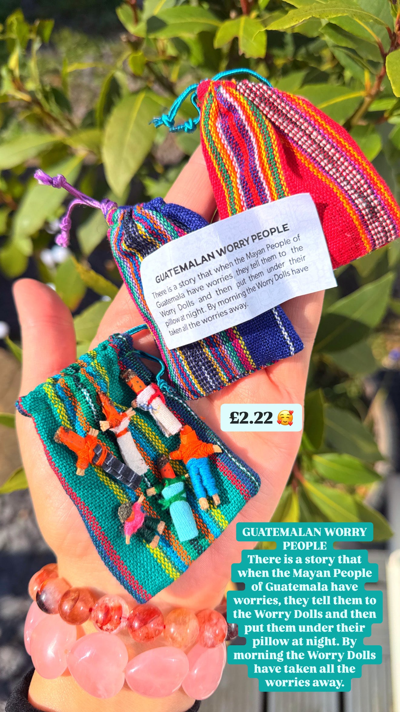 There is a story that when the Mayan People of Guatemala have worries, they tell them to the Worry Dolls and then put them under their pillowat night. By morning the Worry Dolls have taken all the worries away.