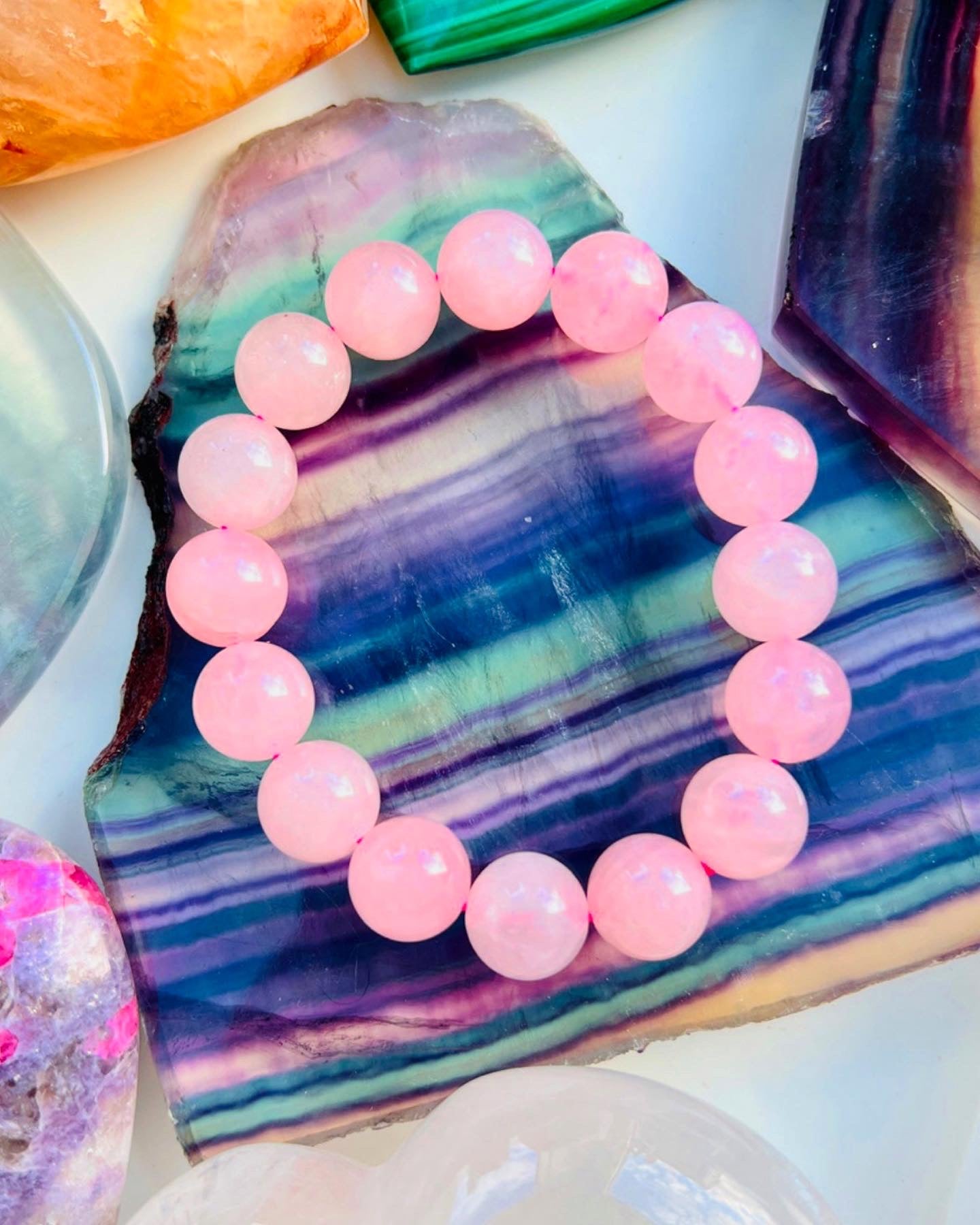 ๐น๐ Pretty pink chunky round Love Bracelets ๐ฅฐ surrounding you with loving vibrations๐น๐๐ฟ๐น๐๐ฟ The fair and lovely Rose Quartz, with its gentle pink essence, is a Crystal of the heart, a Crystal of Unconditional Love. It carries a soft feminine energy of compassion and peace, tenderness and healing, nourishment and comfort. It speaks directly to the Heart Chakra, dissolving emotional wounds, fears and resentments, and circulates a Divine loving energy throughout the entire aura. Reawakening the heart to its own innate love, it provides a deep sense of personal fulfillment and contentment, allowing you the capacity to truly give and receive love from others. ๐๐น๐๐๐ #heart #rose #rosequartz #pink #crystal #love #bracelet #jewellery #unconditionallove