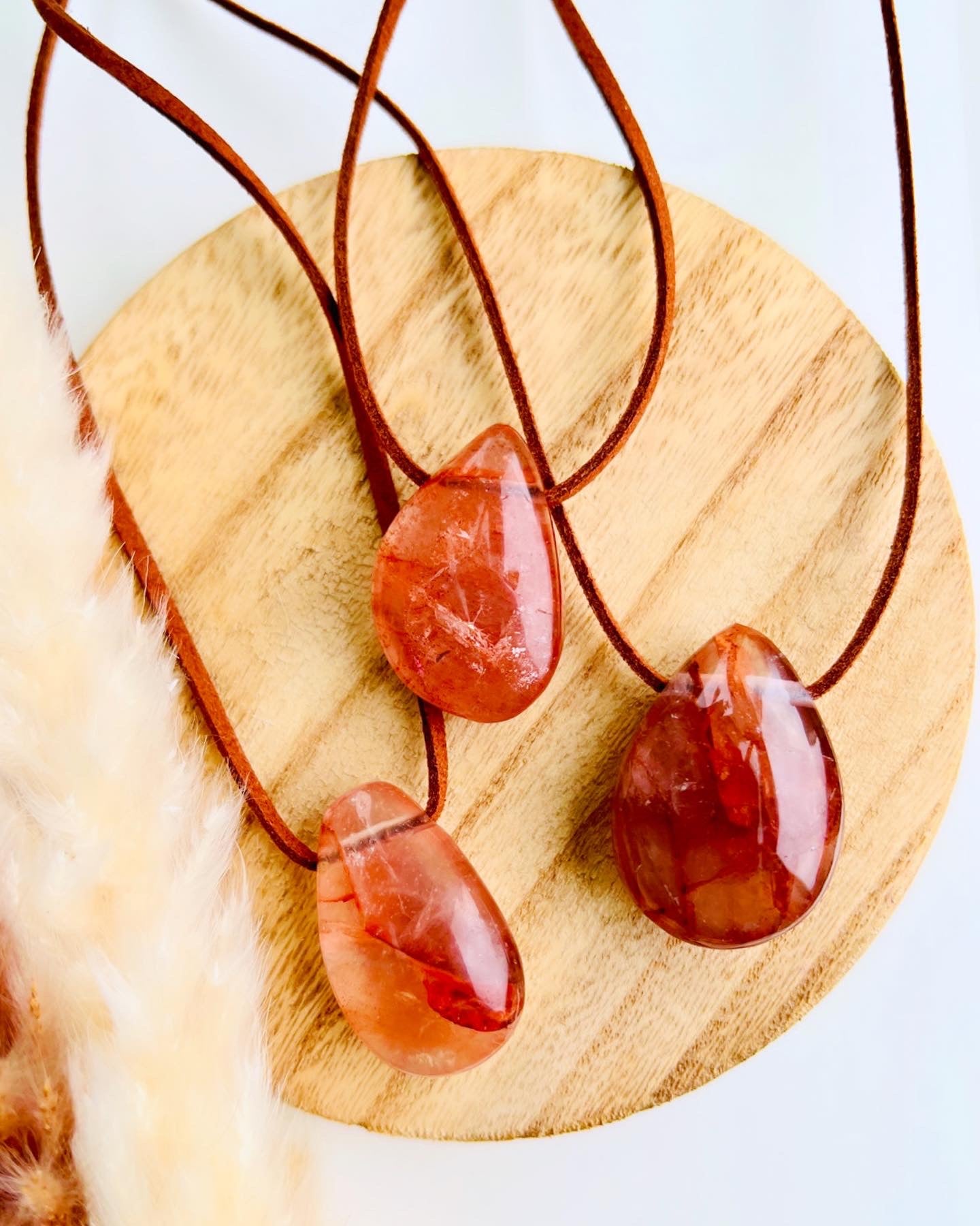 Strawberry Hematoid Quartz Boho pendant on a vegan suede necklace ððððâĪïļððĨ° The Love & Romance Crystal (Romance Quartz aka Strawberry Hematoid Quartz) âĪïļðâĪïļâðĨðĨ Strawberry Hematoid Quartz exhibits pale soothing pink hues. This Crystal brings balance and amplifies the soothing, loving, and good energies around you. Plus, it inspires you to expand your knowledge so you are fully able to make wiser decisions that will serve your highest good ðâĪïļâĪïļâðĨððð #strawberry #strawberryquartz #love #heart #crystals #pendant #bohostyle #boho