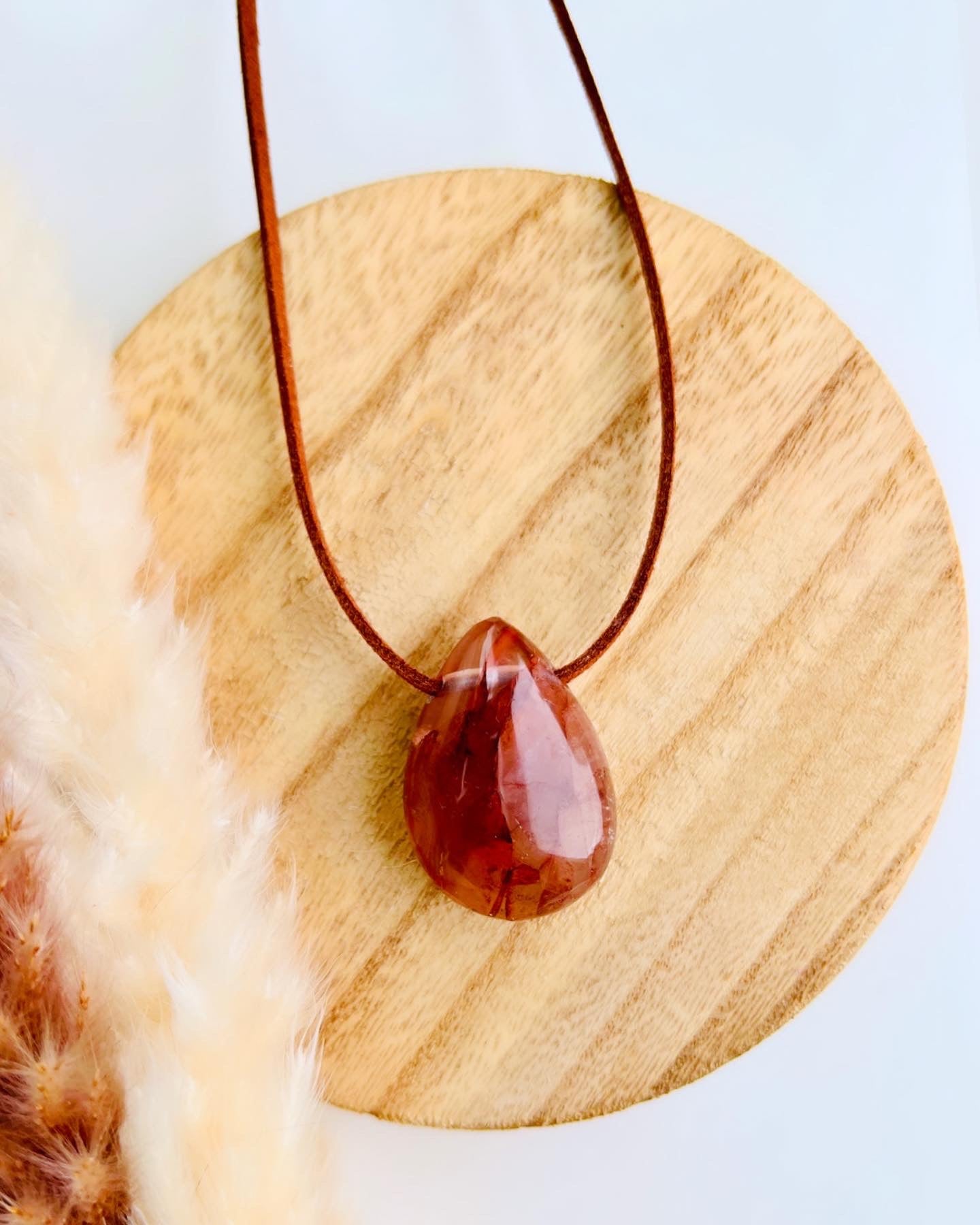 Strawberry Hematoid Quartz Boho pendant on a vegan suede necklace